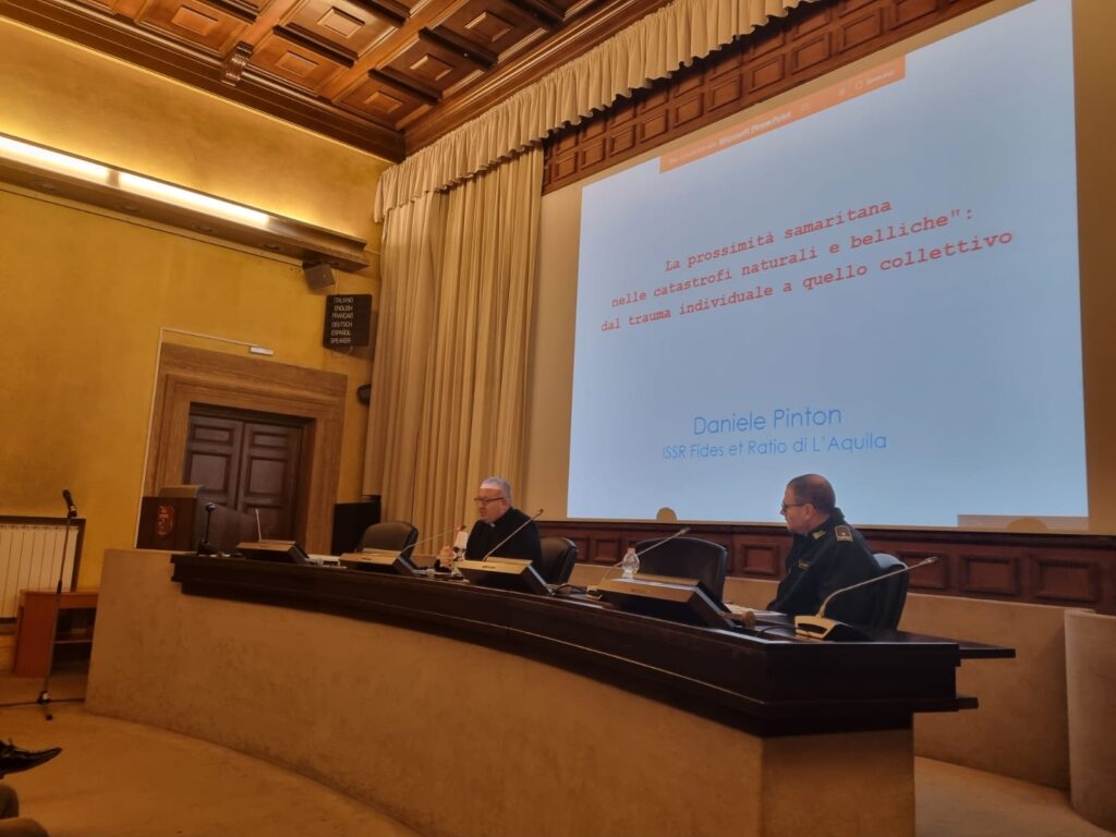 Il Direttore dell’Ufficio Diocesano di Pastorale dell’Emergenza della Chiesa aquilana e dell’ISSR ‘Fides et Ratio’ di L’Aquila, Don Daniele Pinton, è infatti stato invitato a parlare della prossimità samaritana, come linguaggio di azione e risoluzione dei ‘traumi sommersi’, non solo per effetto delle catastrofi sismiche e ambientali, ma anche degli atti terroristici e bellici, come la guerra in ucraina e quella israelo-palestinese, che da poco più di un mese produce distruzione e morte.