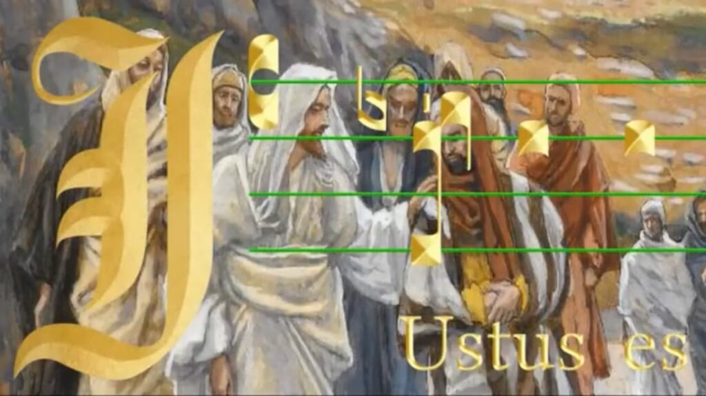L’apice melodico è sulle parole servo tuo. È ancora un’antifona che ci richiama al valore vitale della nostra appartenenza a Dio, dove «essere Suo servo significa regnare» (S. Giovanni Gualberto) e significa anche parlare «affinché il malvagio desista dalla sua condotta» (Ez 33,8). Infatti, «la carità non fa alcun male al prossimo» (Rm 13,10) e di conseguenza «se il tuo fratello ti ascolterà, avrai guadagnato il tuo fratello» (Mt 18,15). Lo scándicus iniziale trasporta la melodia dalla finális del modo alla dominante, per poi discendere dolcemente di tre note sulla parola Dómine; in modo speculare tre note analoghe riportano alla dominante sulla parola rectum. In due brevi frasi (tratte dal salmo 118) abbiamo descritto l’agire di Dio verso colui che è in comunione con Lui: giusto, retto, misericordioso. Nella melodia osserviamo che mentre il servo è innalzato, il Signore [Dómine] si abbassa fino alla finális con la sua misericordia. È il mistero dell’incontro fra Dio e l’uomo. Anche l’incontro dell’uomo con Dio ha un suo mistero: è un lungo cammino che inizia col Battesimo, con l’immersione verso [èis] il Suo Nome (Mt 28,19). Certamente significa nutrire un rapporto personale con Gesù. Ma è un rapporto che, per crescere, non può prescindere dalla comunione ecclesiale. Solo nella comunione, camminando insieme verso il Suo Nome [sun-egheménoi èis tò ónoma] (Mt 18,20), possiamo entrare nel mistero della volontà di Dio, fino a desiderare ciò che Lui vuole donarci. «Perché dove sono due o tre riuniti nel mio nome, lì sono io in mezzo a loro» (Mt 18,20).