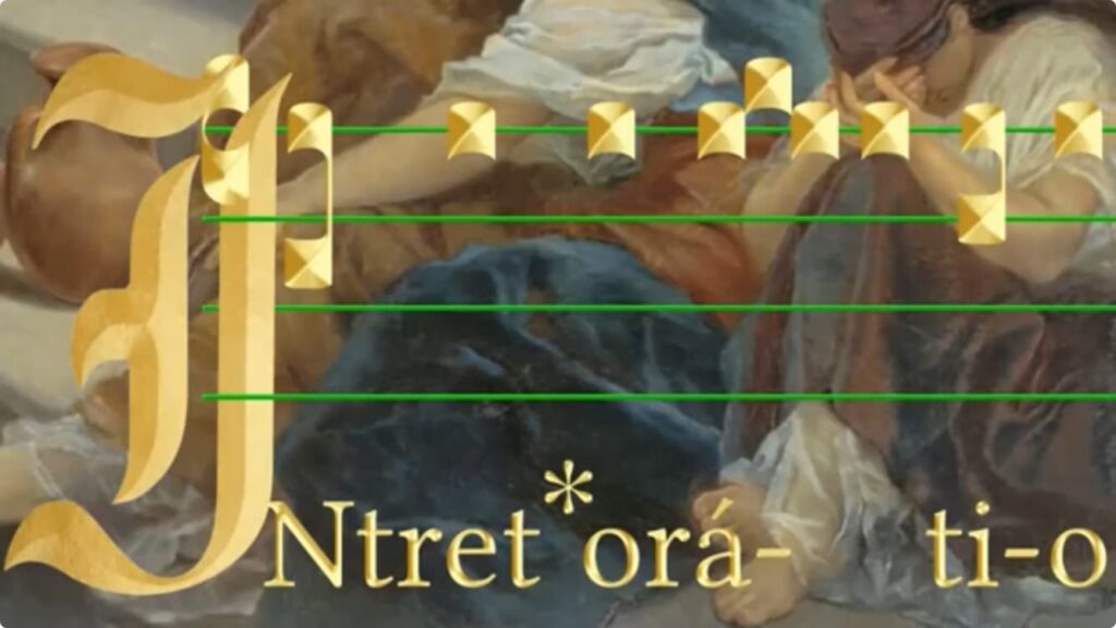 «Intret orátio mea in conspéctu tuo: inclína aurem tua ad precem meam Dómine. (La mia preghiera entri al tuo cospetto: tendi l’orecchio al mio lamento.) – cfr. Sal 87,3 Vulg.»