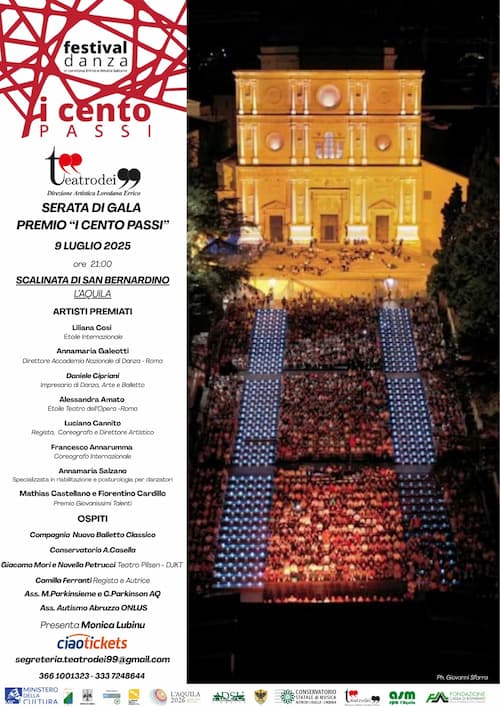 Questa sera, alle 21:00, nella suggestiva cornice della scalinata di San Bernardino da Siena, si terrà una serata speciale dedicata alla bellezza, al talento e all’anima della danza: il Festival di Danza "I Cento Passi", sotto la direzione artistica di Loredana Errico e Amalia Salzano, è giunto quest’anno alla sua quinta edizione.