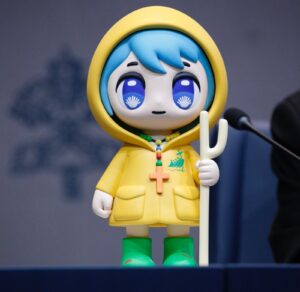 Dopo aver parlato dell’Expo di Osaka, l’Esposizione Universale in Giappone che si terrà dal 13 aprile al 13 ottobre 2025, è stata presentata la mascotte del Giubileo e di Osaka: si tratta di Luce, vicina alla cultura pop amata dai giovani. "Nata dalla creatività di Simone Legno, Luce è la mascotte che ci accompagnerà. Come si vede, è una pellegrina raffigurata con gli elementi tipici del pellegrino: il k way giallo per ripararsi dalle intemperie; gli stivali sporchi di terra per la strada percorsa; la croce missionaria al collo; il bastone del pellegrino e soprattutto gli occhi luminosi, simbolo della Speranza del cuore".