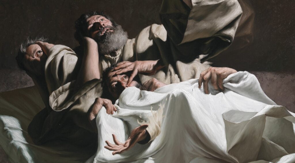 Immagine: Giovanni Gasparro, Il sogno di San Giuseppe (particolare) – Olio su tela, 207 X 155 cm, 2012 - Basilica San Giuseppe Artigiano, L’Aquila