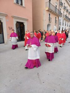 L’Arcivescovo – in questo solenne giorno di festa – ha consegnato alla Città e all’Arcidiocesi la vocazione cristiana impregnata della logica del seme, così come ci veniva rivelato dalla pagina del Vangelo: «Se il chicco di grano caduto in terra non muore, rimane solo; se invece muore, produce molto frutto» (Gv 12,24); nella logica di chi dona la vita, collaborando alla redenzione universale, secondo le parole delle sante Scritture: «Benedico il Signore che mi ha dato consiglio; anche di notte il mio animo mi istruisce. Io pongo sempre davanti a me il Signore, sta alla mia destra, non potrò vacillare. Per questo gioisce il mio cuore ed esulta la mia anima; anche il mio corpo riposa al sicuro, perché non abbandonerai la mia vita negli inferi, né lascerai che il tuo fedele veda la fossa. Mi indicherai il sentiero della vita, gioia piena alla tua presenza, dolcezza senza fine alla tua destra» (Sal 16/15).
