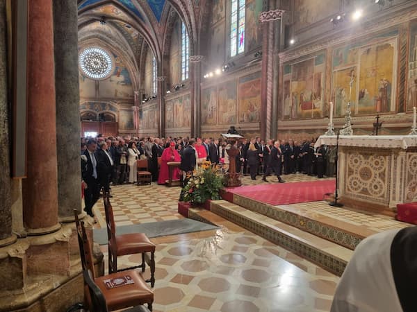 «L'olio nuovo, L’olio del nuovo» è l’espressione centrale della omelia tenuta dal vescovo di Isernia-Venafro, monsignor Camillo Cibotti, il quale ha presieduto la santa Messa nella mattina del 4 ottobre, in Assisi, solennità del Serafico Padre San Francesco. La celebrazione è stata concelebrata dagli Arcivescovi e Vescovi della Conferenza Episcopale Abruzzese-Molisana, dai Ministri Generali e Provinciali delle maggiori famiglie Francescane, da numerosi sacerdoti provenienti dall’Abruzzo. Erano presenti: la Presidente del Consiglio dei Ministri, l’onorevole Giorgia Meloni; il Ministro della Cultura, l’onorevole Alessandro Giuli; il Presidente della Regione Abruzzo, Marco Marsilio; la Presidente della Regione Umbria, Stefania Proietti; il sindaco di Assisi, Valter Stoppini; il sindaco di L’Aquila, Pierluigi Biondi, il quale ha offerto – a nome di tutti i Comuni d’Italia – l’olio che alimenta la lampada che arde presso la tomba di san Francesco, che egli stesso ha acceso all’inizio della celebrazione eucaristica.