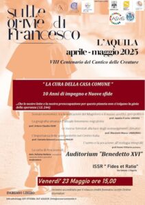 La tavola rotonda si terrà presso l’auditorium “Benedetto XVI” dell’Istituto Superiore di Scienze Religiose “Fides et Ratio” di L’Aquila, via Vetoio palazzo INAIL, venerdì 23 maggio a partire dalle ore 15.